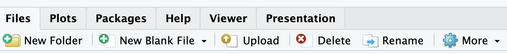 Most of the coding work you do in this course will be submitted through GitHub, so typically you shouldn’t need to move files between the RStudio Server and your local computer. If you do, however, then you can upload files with the Upload button on the files tab: